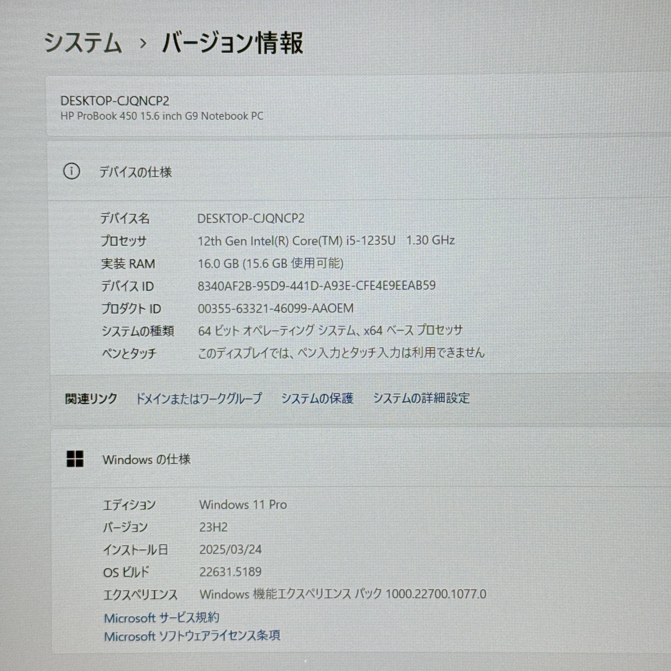 美品2022年式/ HP ProBook 450G9/ i5第12世代/SSD256GB/メモリ16GB/人気ノートパソコン