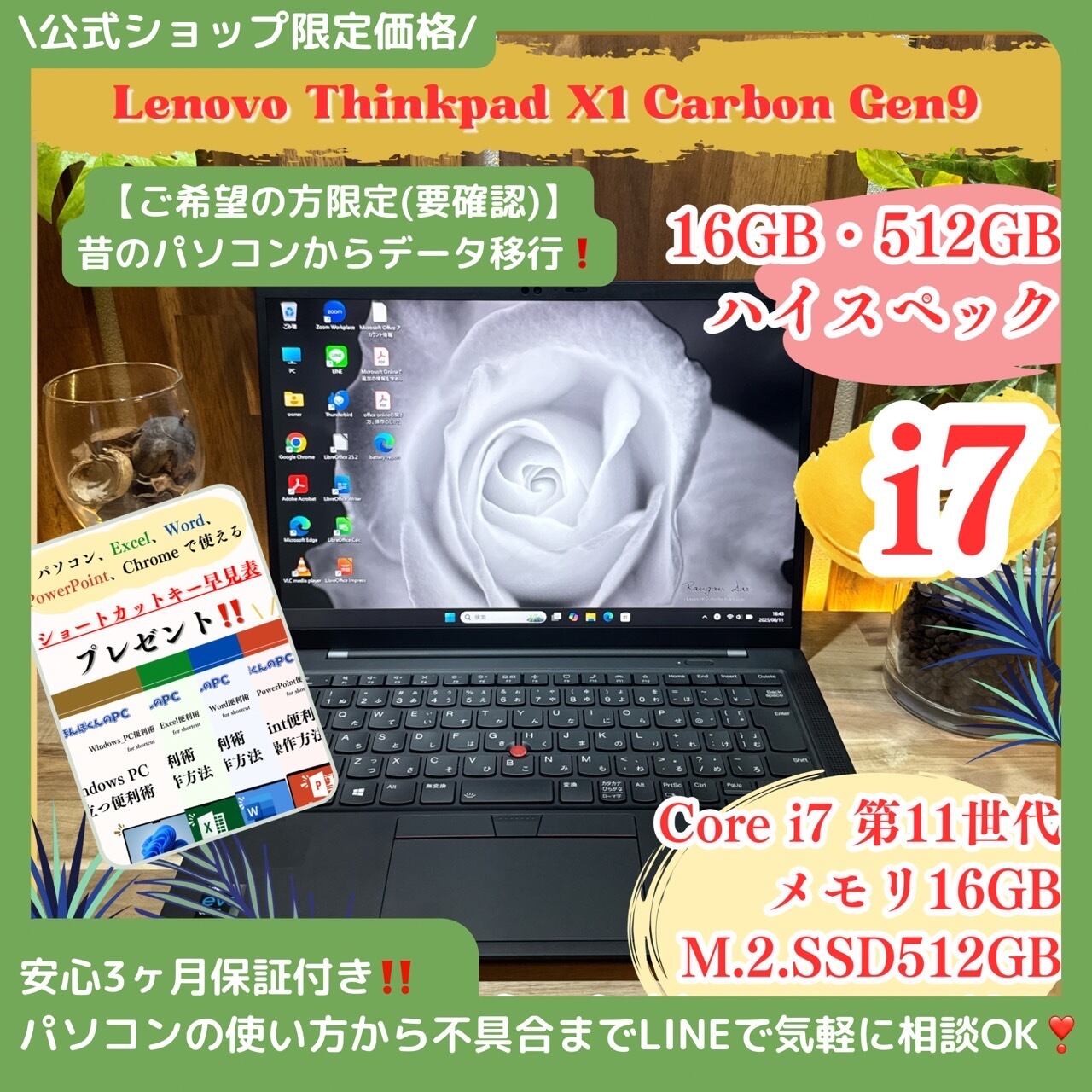 \ 公式ショップ限定価格❣️/ 極上品《ハイスペック》ThinkPad X1 Carbon Gen9 最高峰i7第11世代 SSD512GB ノートパソコン 安心サポート&3ヶ月保証付き