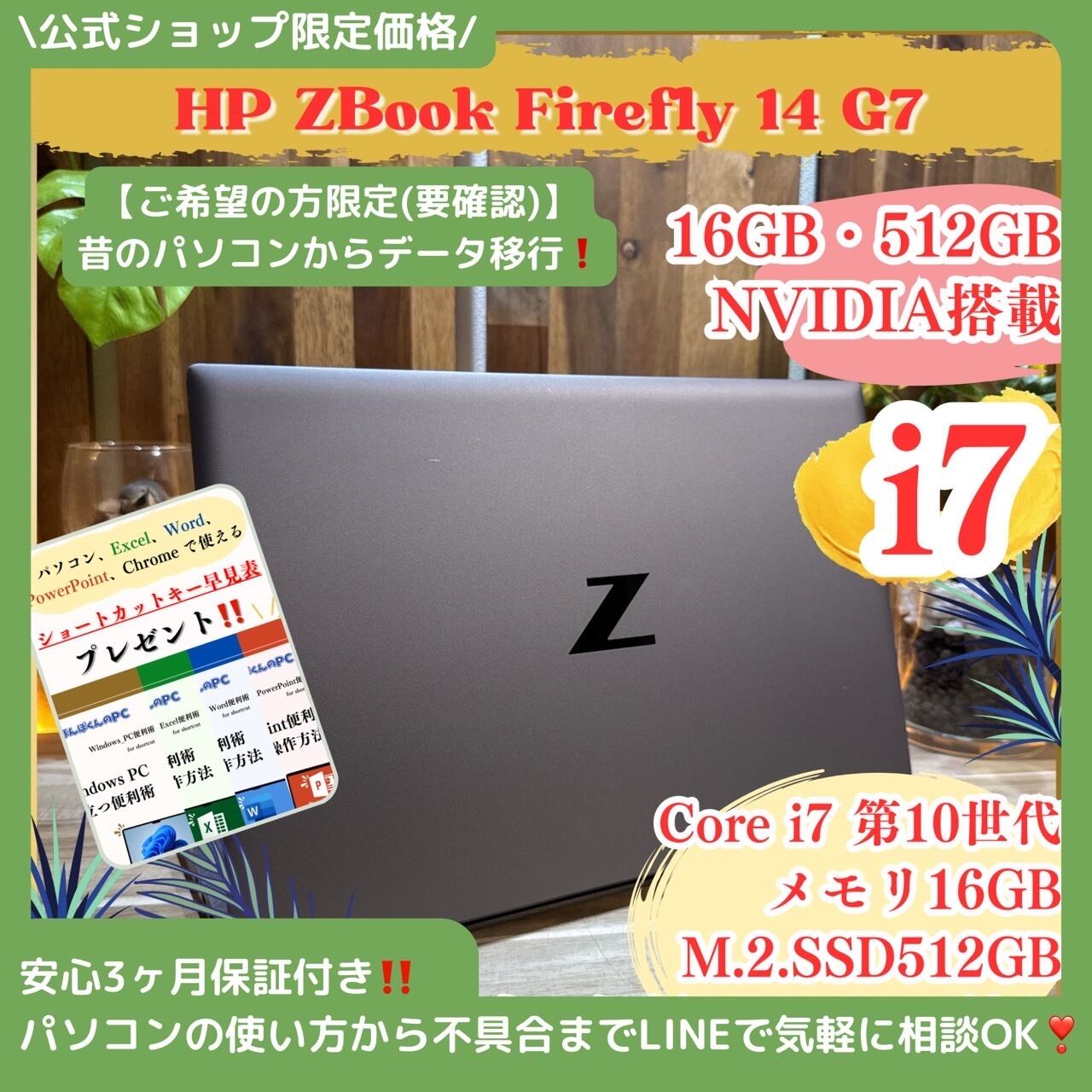 \公式ショップ限定価格❣️/ NVIDIA搭載《ハイスペック》HP Zbook Firefly 14 G7 i7 メモリ16GB 512GB ノートパソコン 安心サポート&3ヶ月保証付き