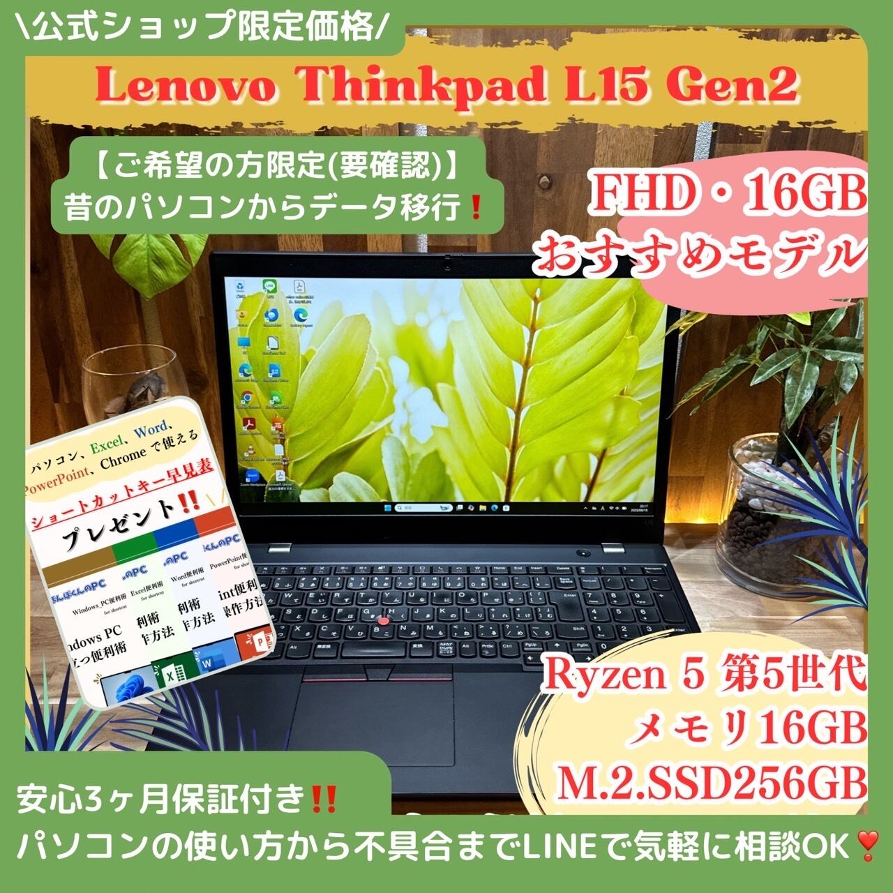 \ 公式ショップ限定価格❣️/ おすすめ《ハイスペック》ThinkPad L15 Gen2 Ryzen5 メモリ16GB SSD256GB ノートパソコン 安心サポート&3ヶ月保証付き