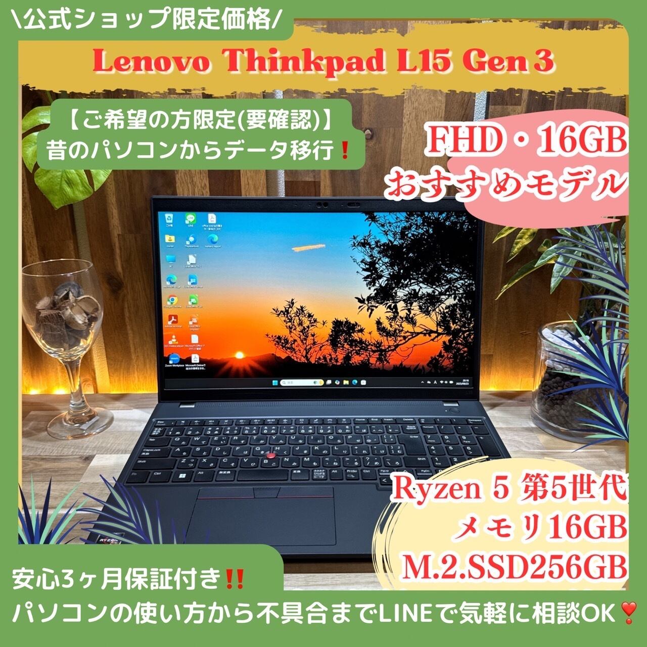 \ 公式ショップ限定価格❣️/ おすすめ《ハイスペック》ThinkPad L15 Gen3 メモリ16GB SSD256GB Ryan5 フルHD ノートパソコン 安心サポート&3ヶ月保証付き