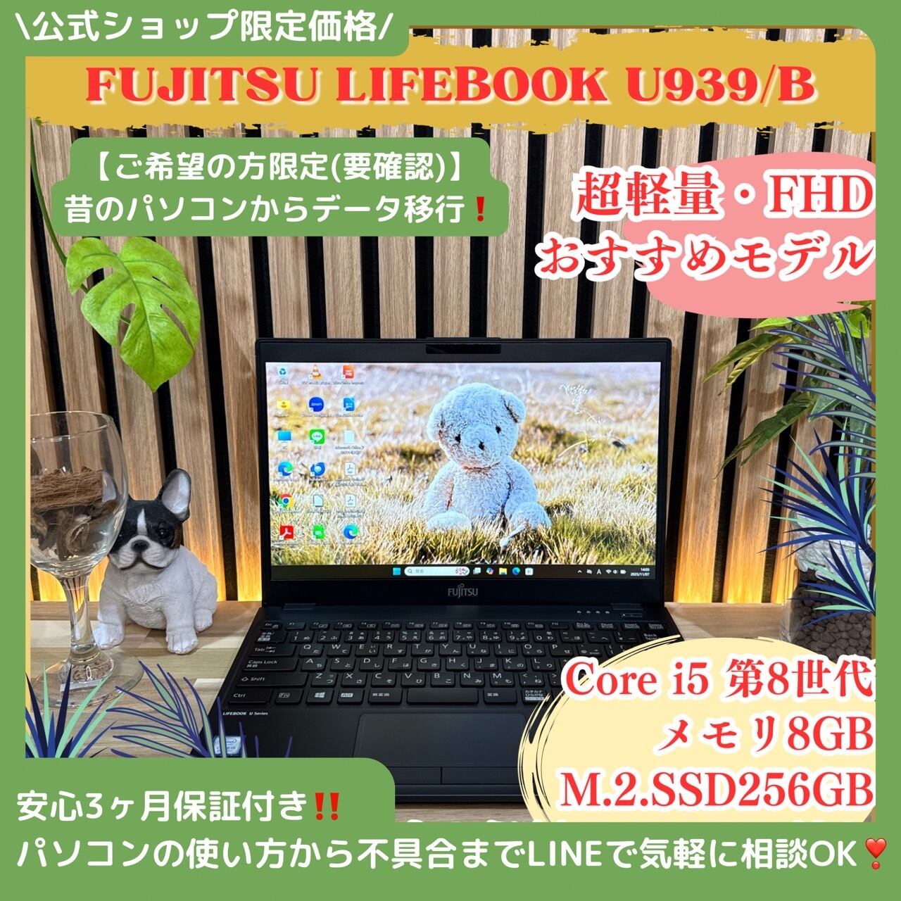 \ 公式ショップ限定価格❣️/ 《超軽量》富士通 LIFEBOOK U939/B 13.3インチ メモリ8GB SSD256GB 第8世代 FHD ノートパソコン 安心サポート&3ヶ月保証付き