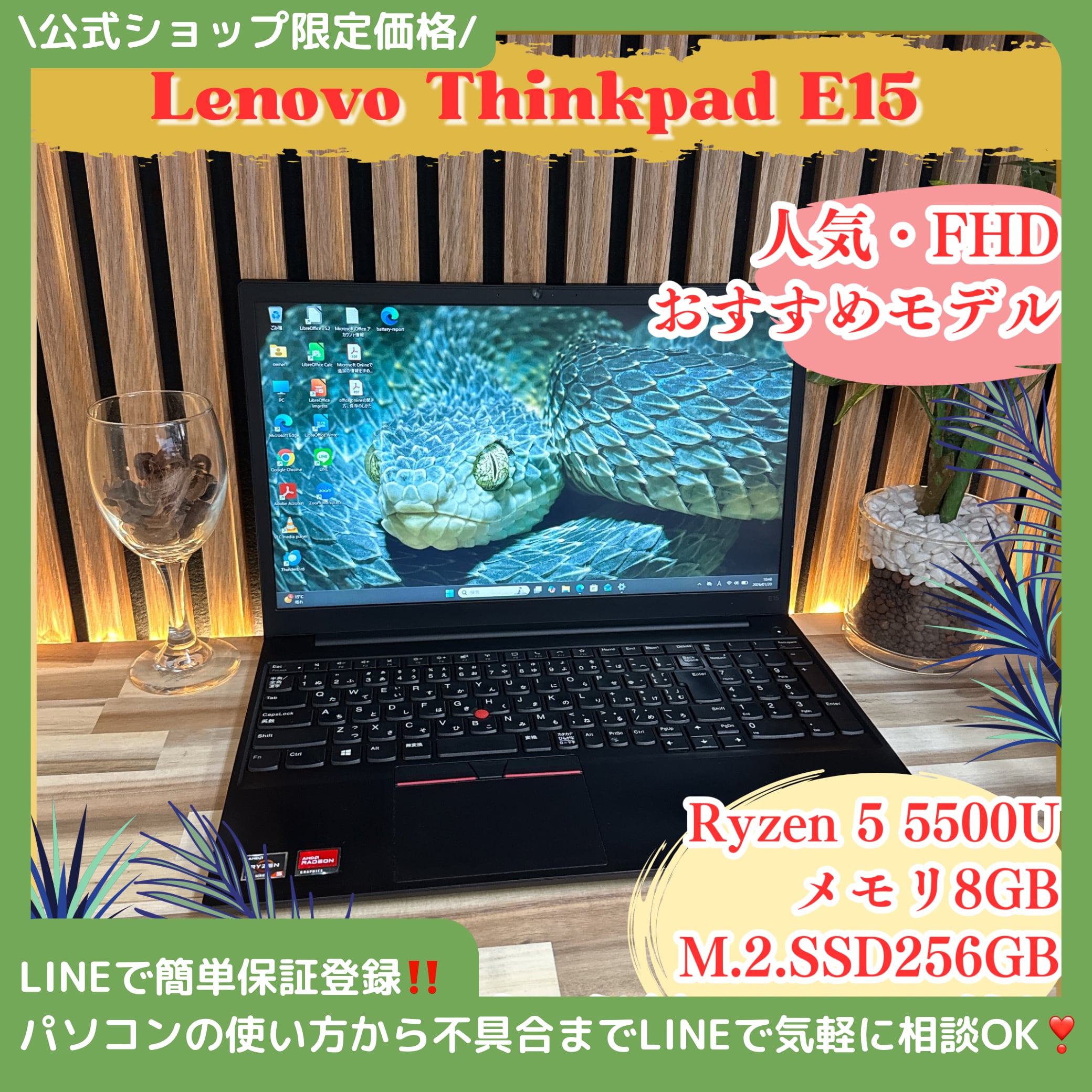 『おすすめ』Lenovo ThinkPad E15 Ryzen5 フルHD メモリ8GB SSD256GB ノートパソコン