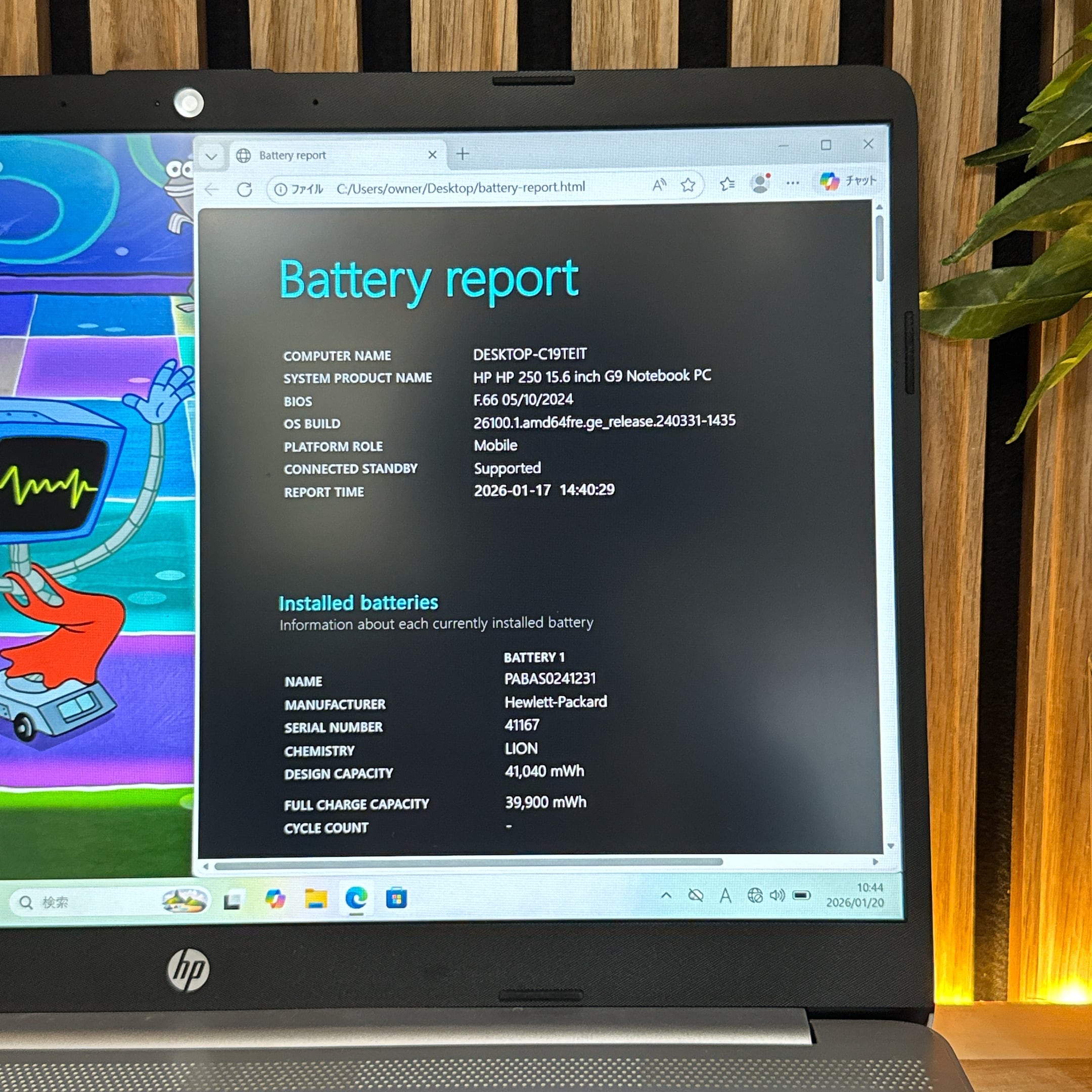 【バッテリー】残量約100%、非常に良好