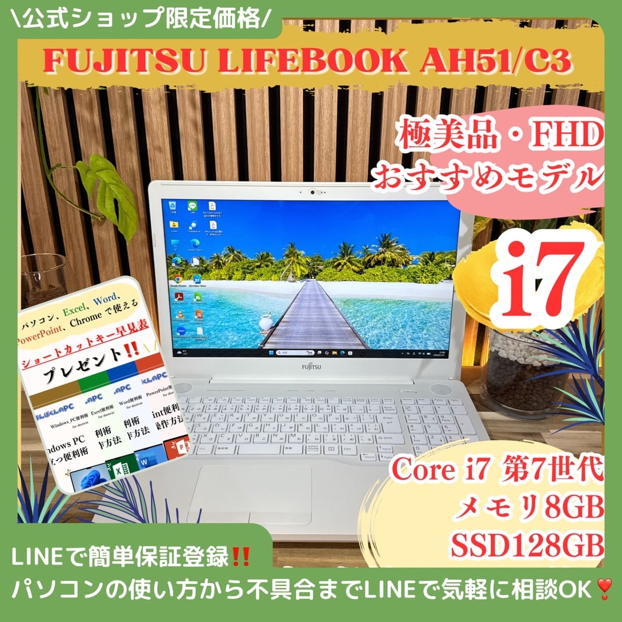 \ 公式ショップ限定価格❣️/ 極美品《最高峰i7搭載》富士通 LIFEBOOK AH51/C3 新品SSD128GB搭載 メモリ8GB ノートパソコン 安心サポート&3ヶ月保証付き