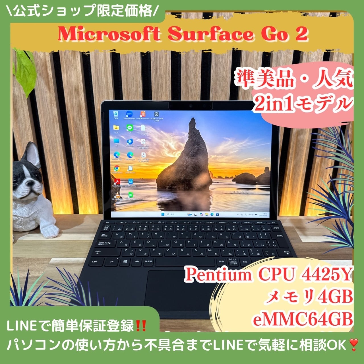 \ 公式ショップ限定価格❣️/ 準美品《2in1モデル》Surface Go 2 プラチナ メモリ4GB eMMC64GB Pentium 人気ノートパソコン 安心サポート&3ヶ月保証付き