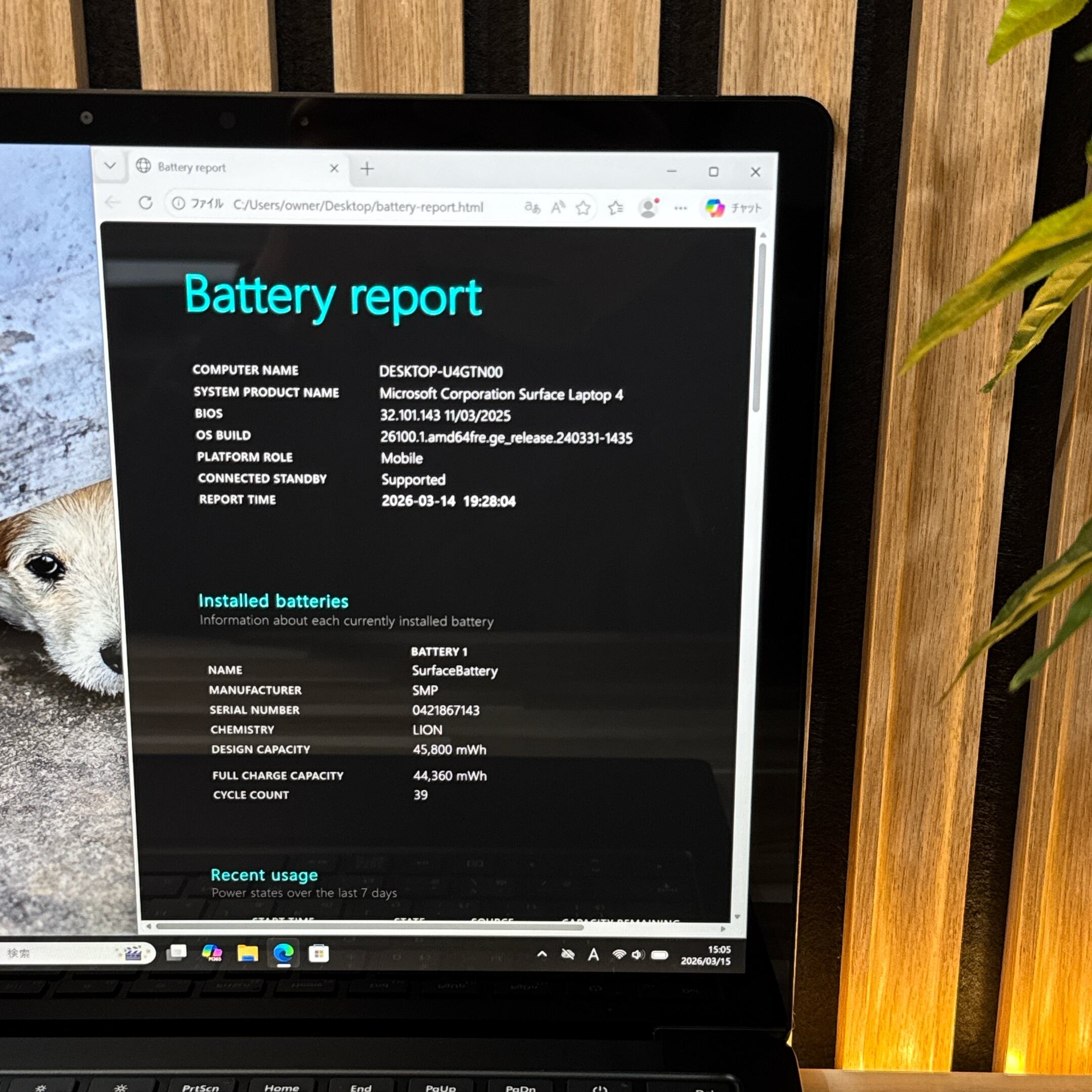 【バッテリー】残量約100%、サイクル39回❣️