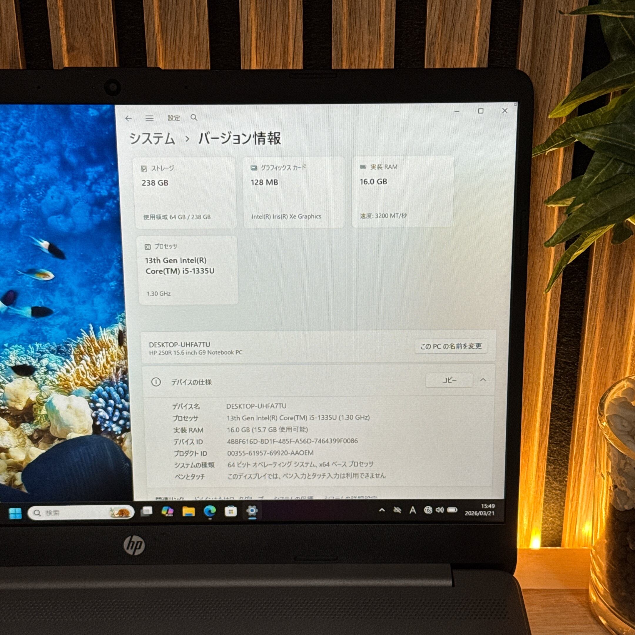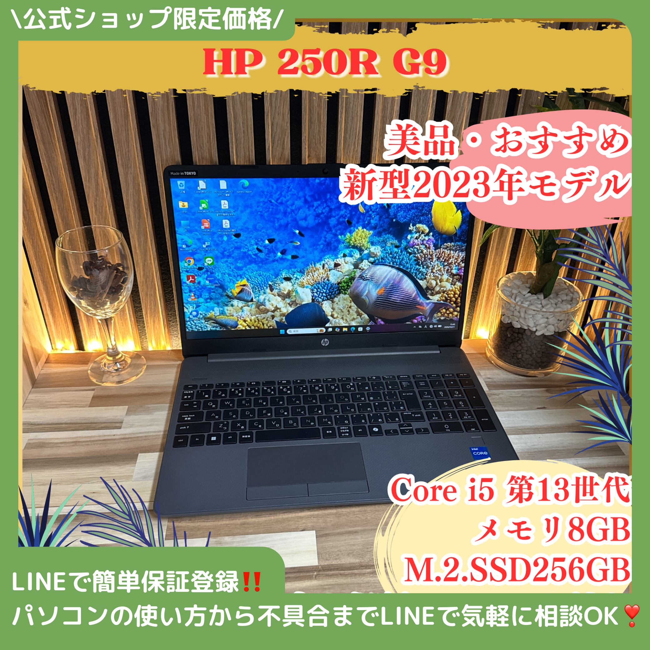 『美品2023年モデル』HP 250R G9 第13世代 SSD256GB フルHD ノートパソコン オフィス付き