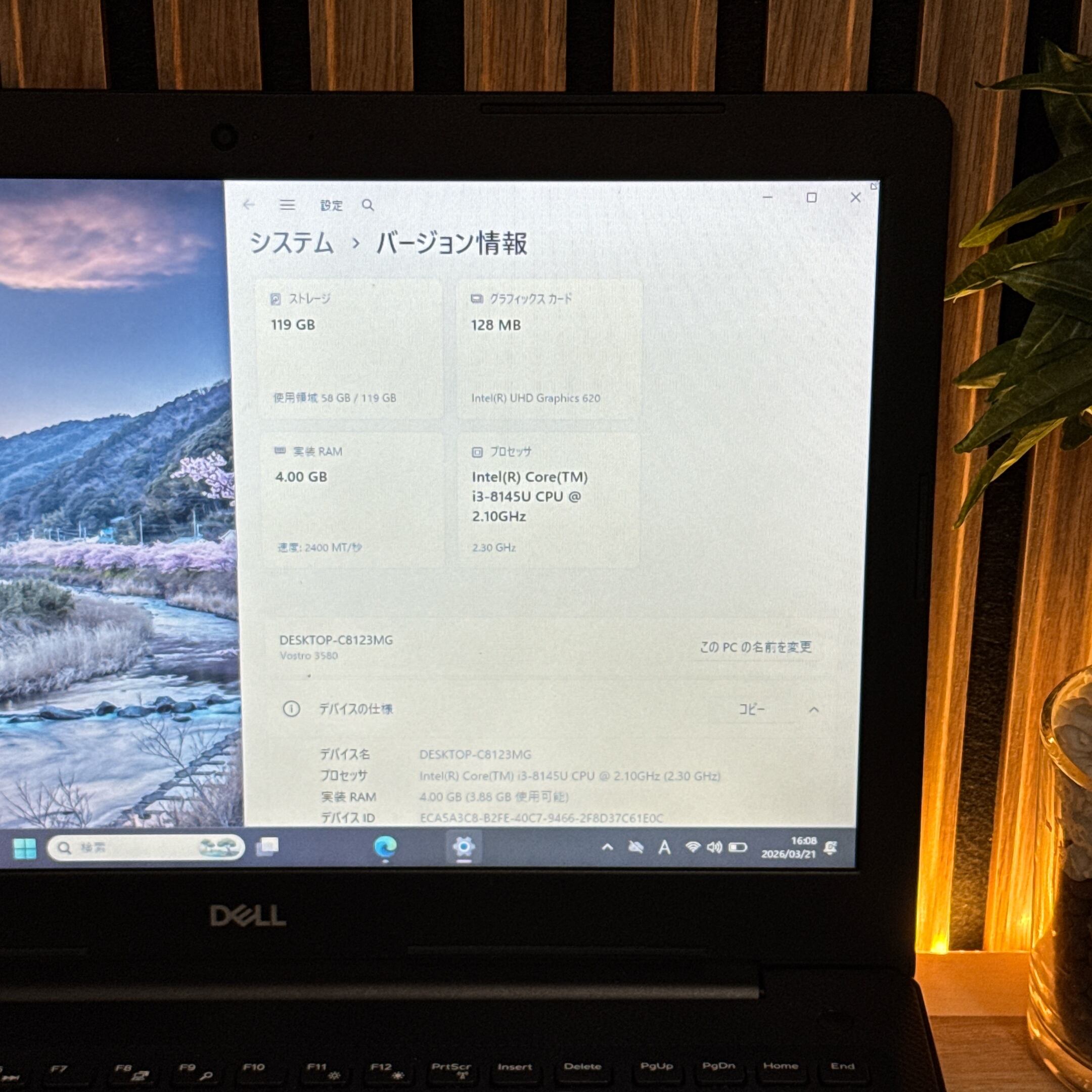 『コスパ最強』Dell Vostro 3580 大型液晶 Core i3第8世代 SSD128GB 人気ノートパソコン
