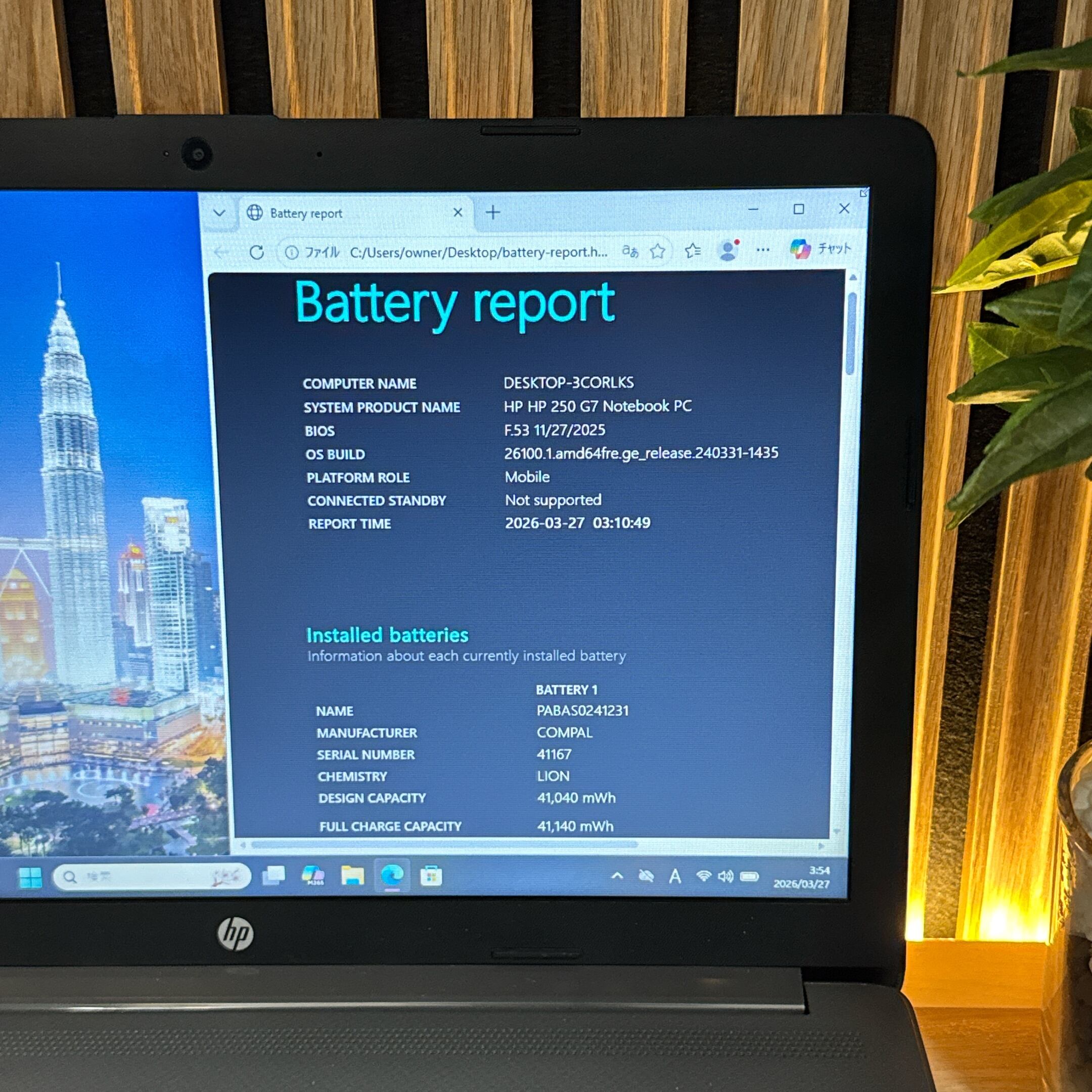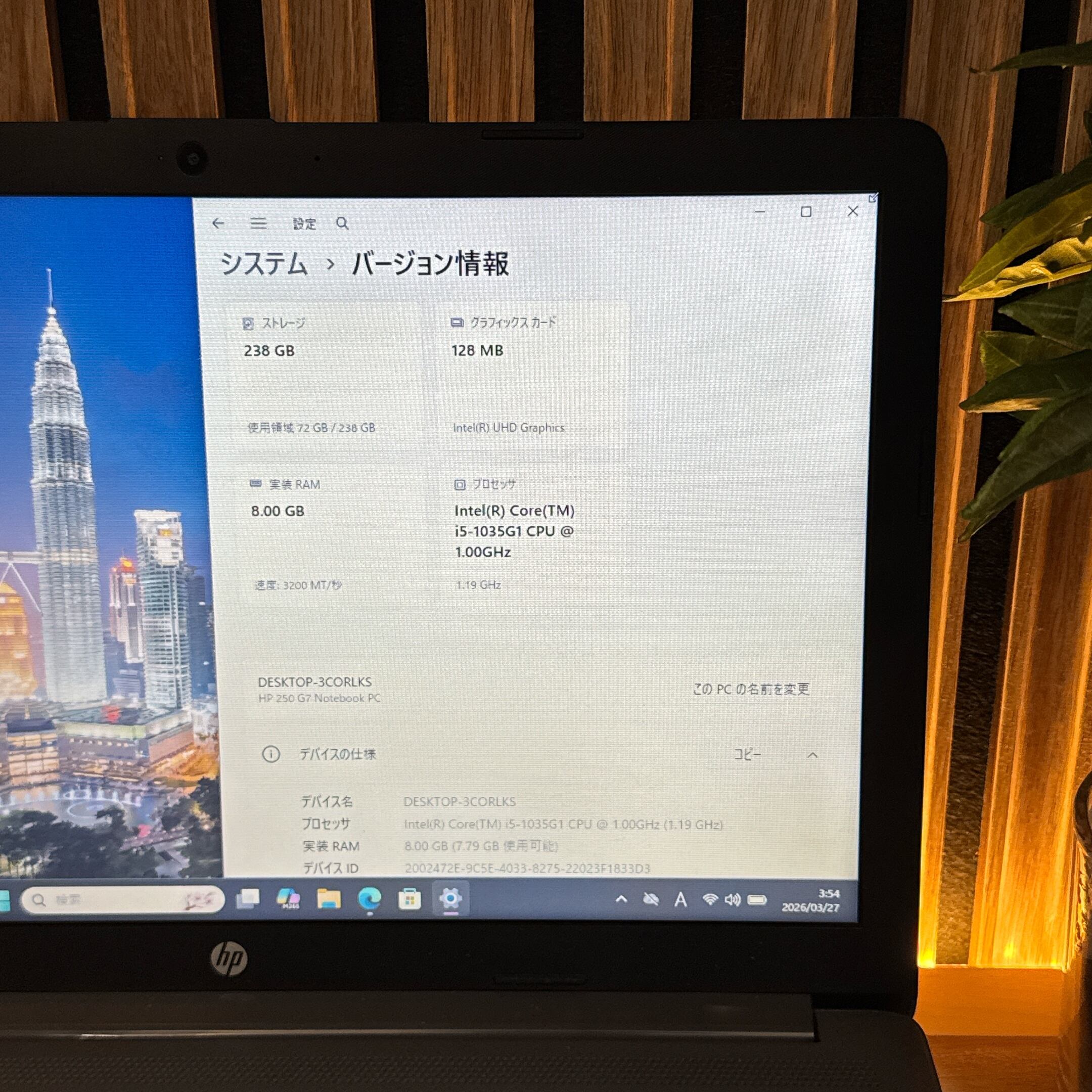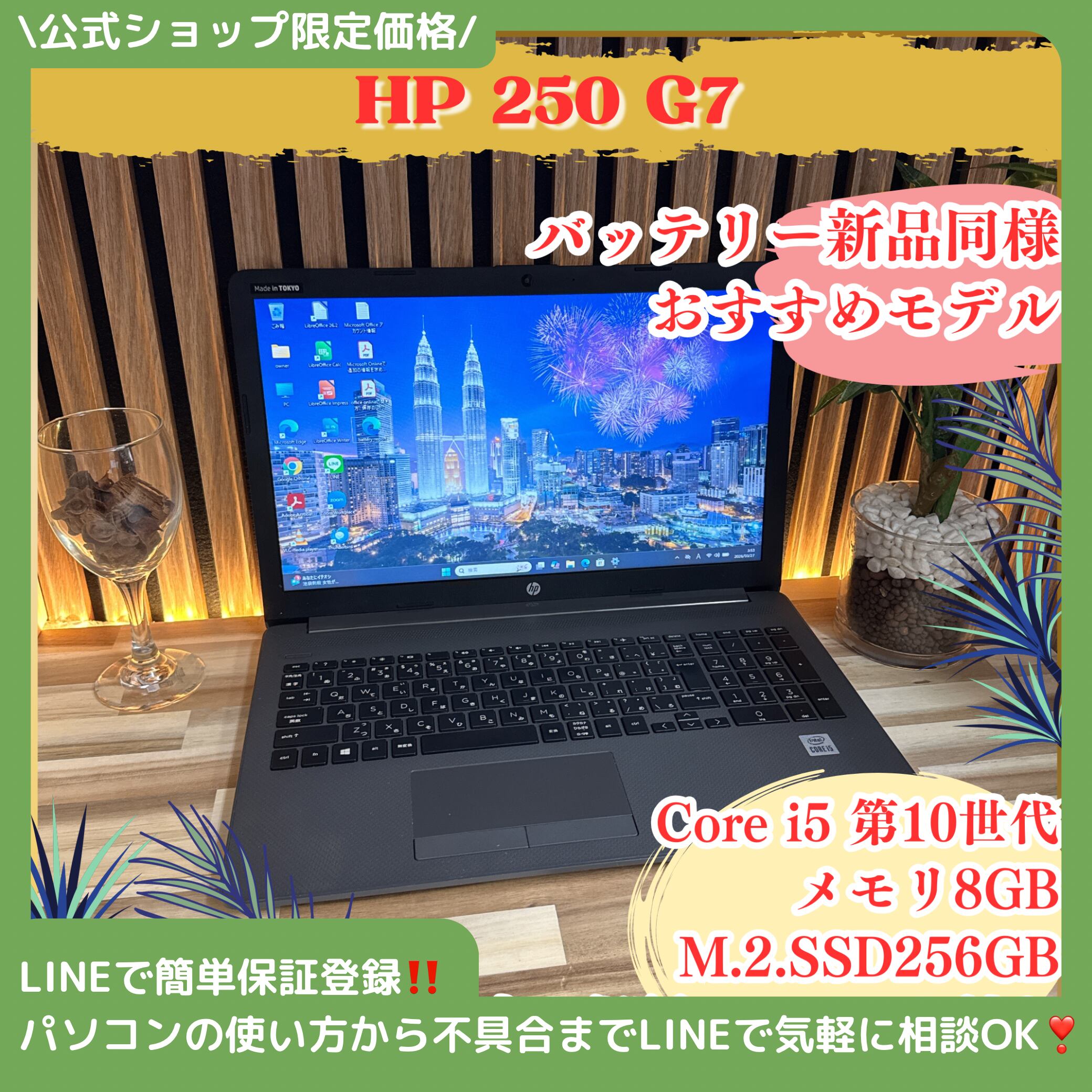 『バッテリー新品同様』HP 250 G7 i5第10世代 15.6型 SSD256GB メモリ8GB ノートパソコン