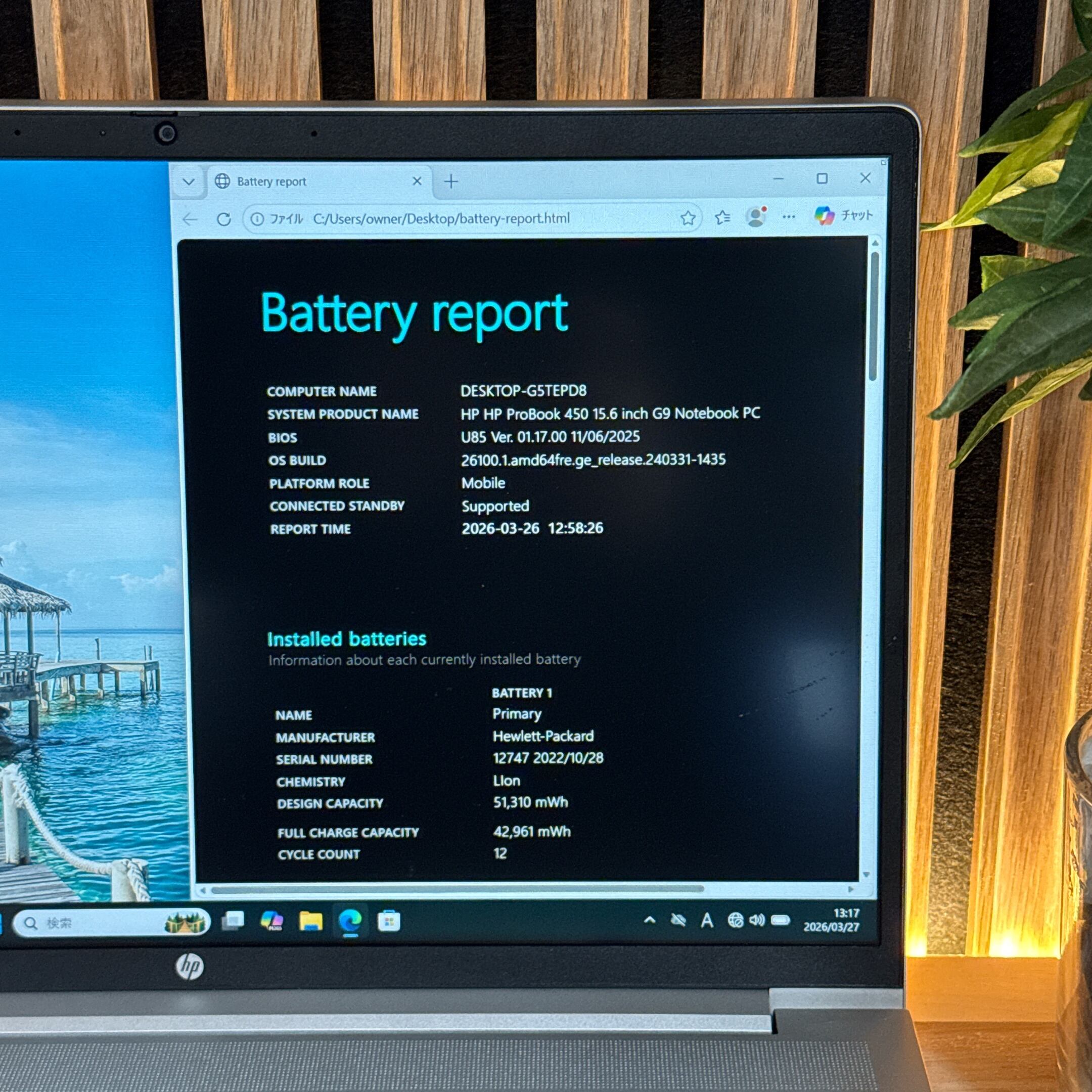 【バッテリー】残量83%、 サイクル12回