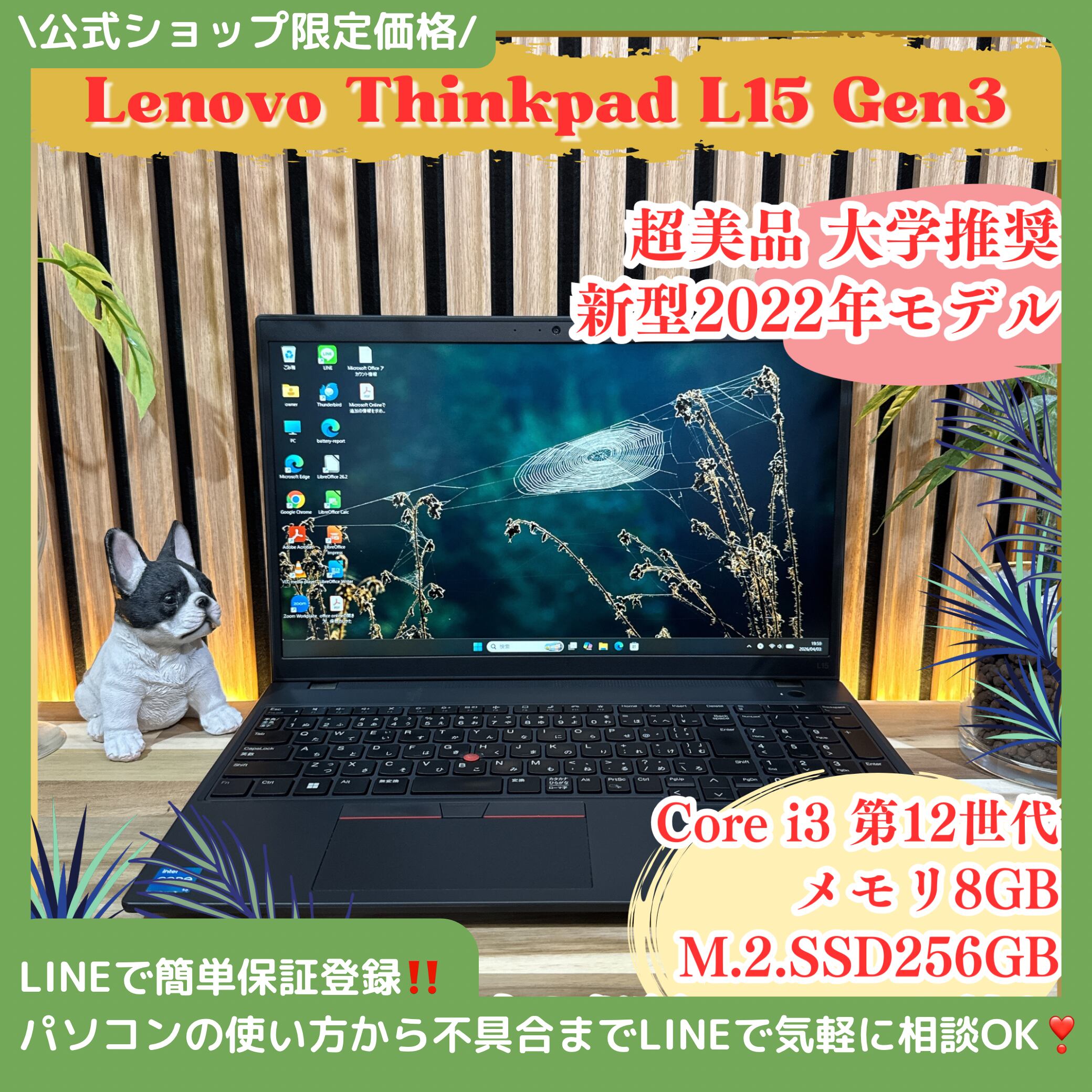 \ 公式ショップ限定価格❣️/ 超美品《新型2022年発売》Lenovo ThinkPad L15 Gen3 第12世代 Corei3 15.6型 ノートパソコン 安心サポート&3ヶ月保証付き