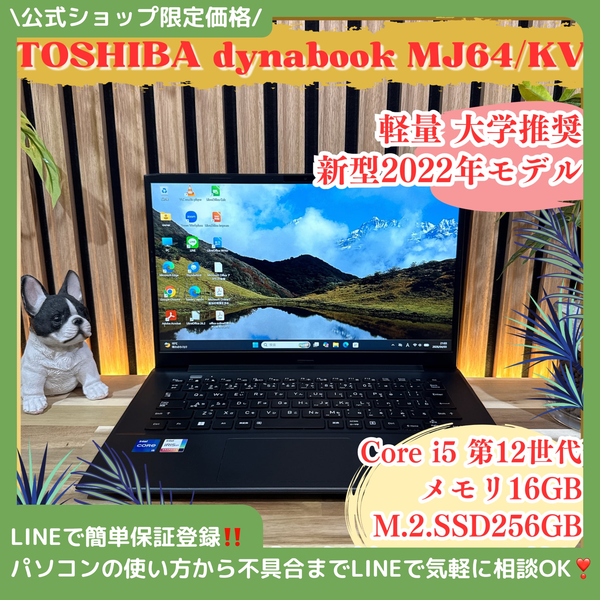 \ 公式ショップ限定価格❣️/ 軽量《新型2022年発売》dynabook MJ64/KV 第12世代 メモリ16GB SSD256GB ノートパソコン 安心サポート&3ヶ月保証付き