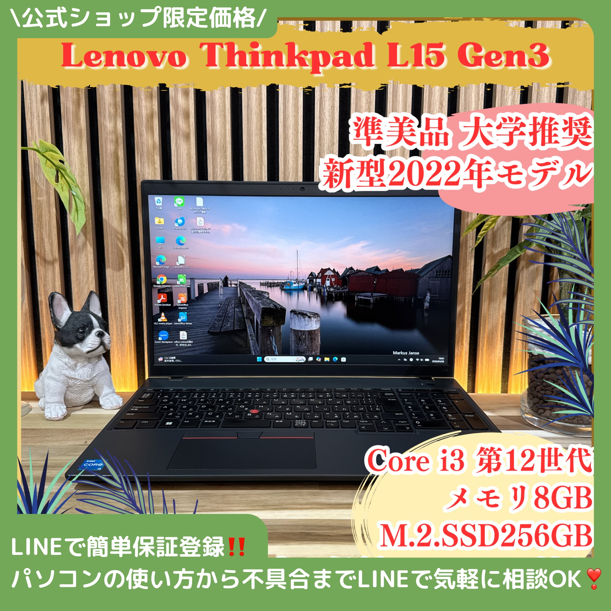 \ 公式ショップ限定価格❣️/ 準美品《新型2022年モデル》ThinkPad L15 Gen3 第12世代 メモリ8GB SSD256GB ノートパソコン 安心サポート&3ヶ月保証付き