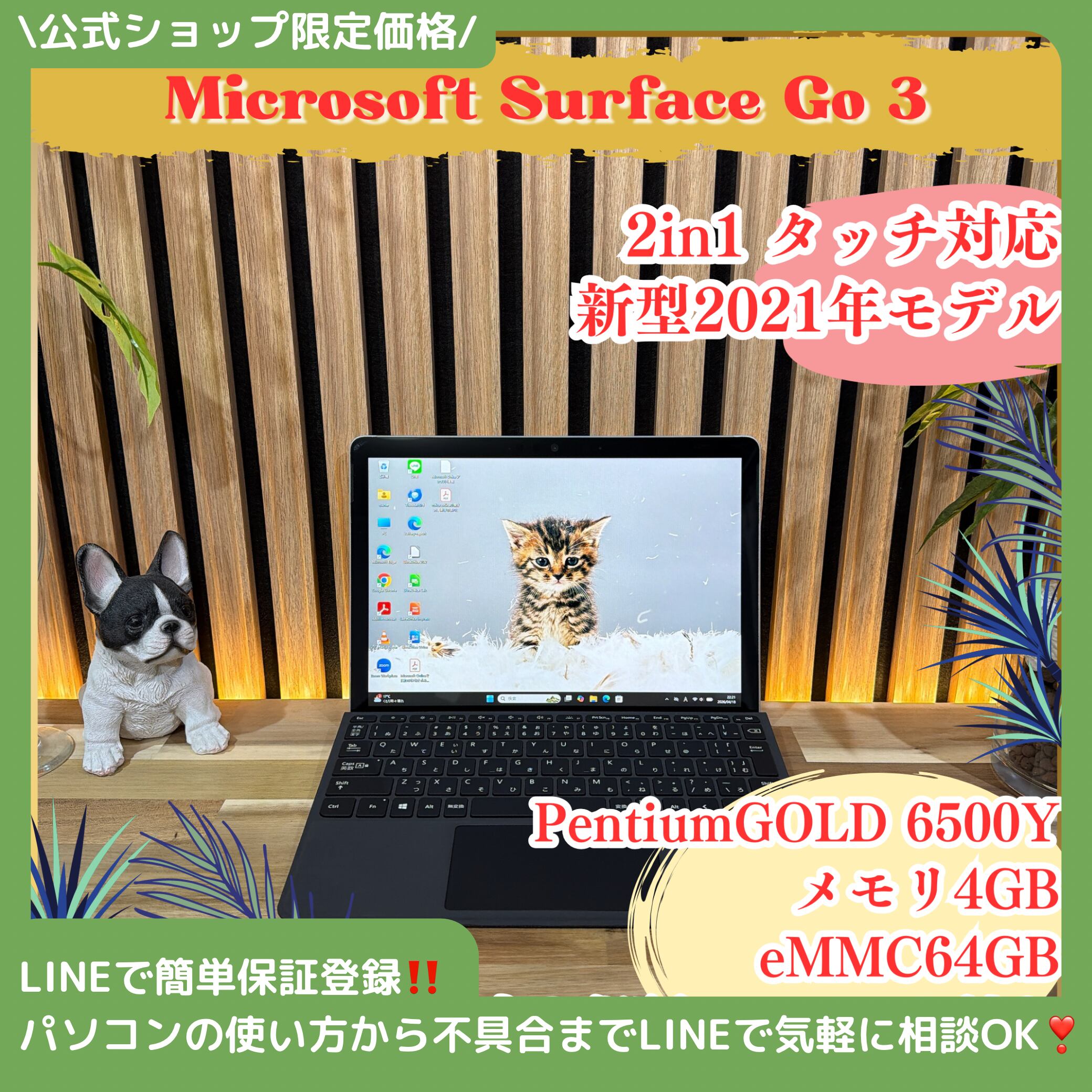 \ 公式ショップ限定価格❣️/ 2in1《上位モデル》新型2021年発売【Surface Go 3】タッチ対応 メモリ4GB eMMC64GB 超軽量 ノートPC 安心サポート&3ヶ月保証付き