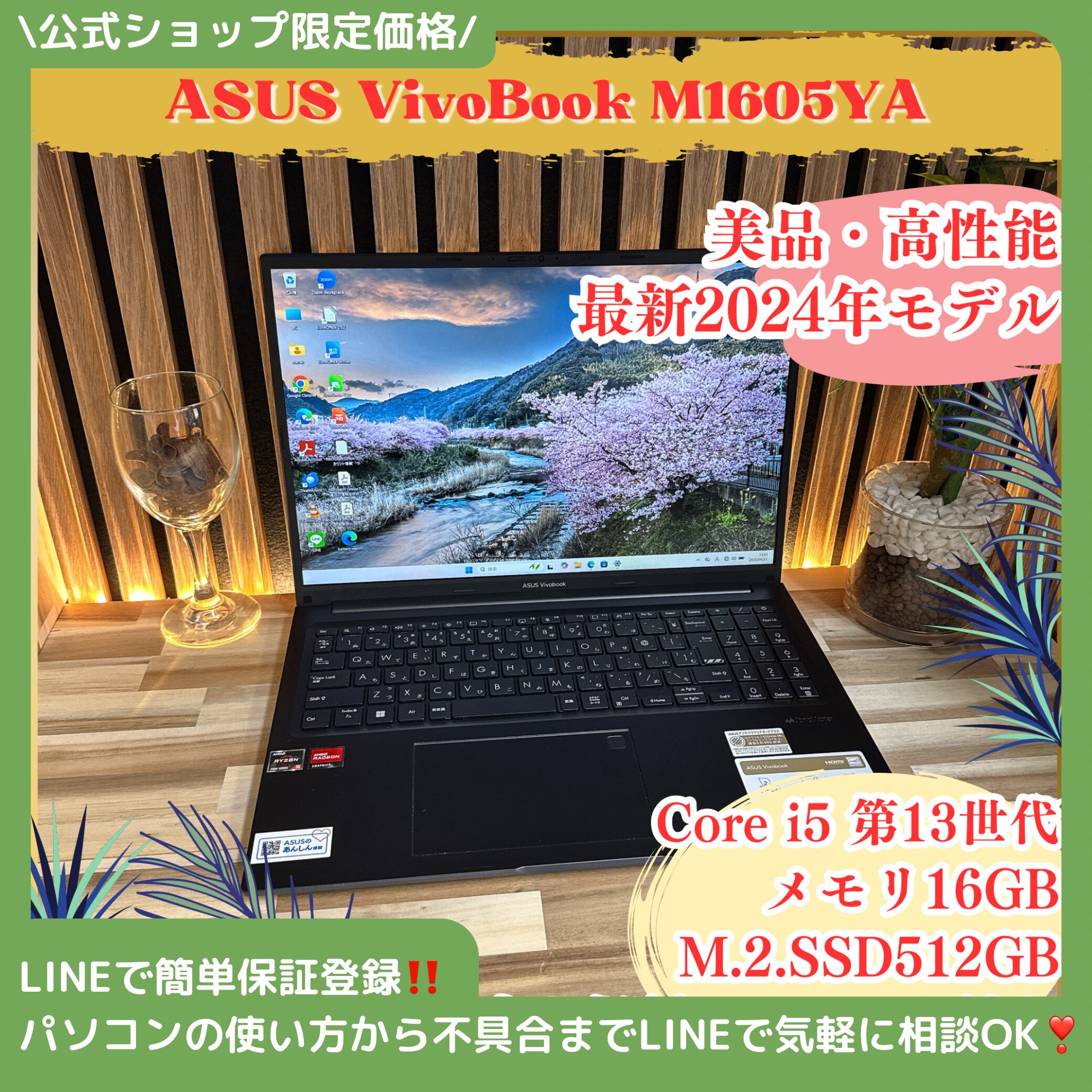 『美品 最新2024年モデル』ASUS Vivobook 16インチ メモリ16GB SSD512GB 人気ノートパソコン
