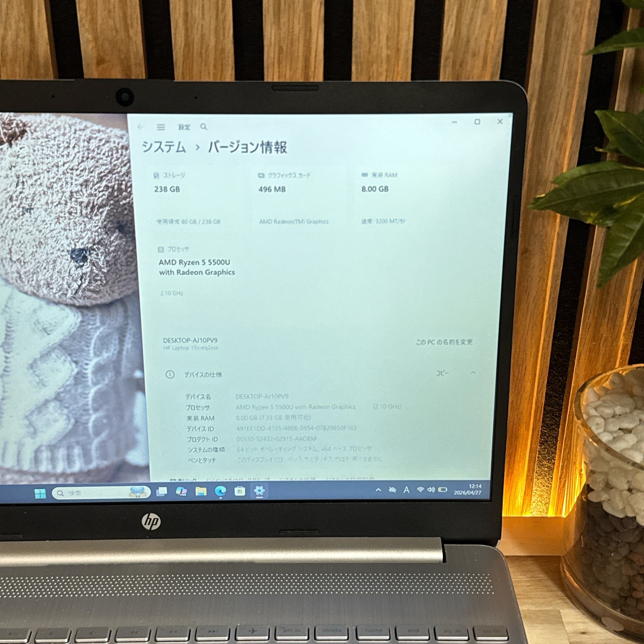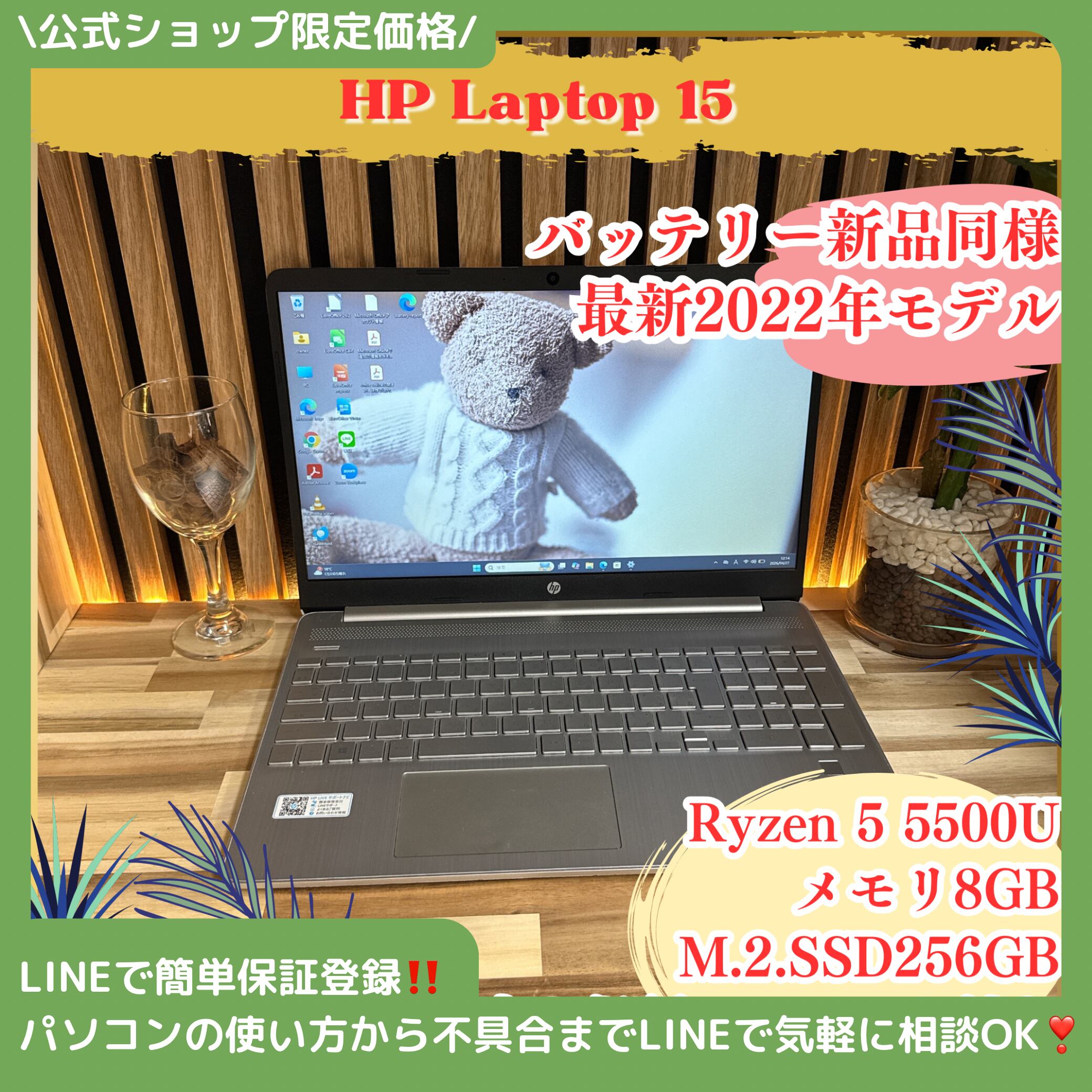 『準美品』HP Laptop 15 Ryzen 5 5500U フルHD メモリ8GB SSD256GB ノートパソコン