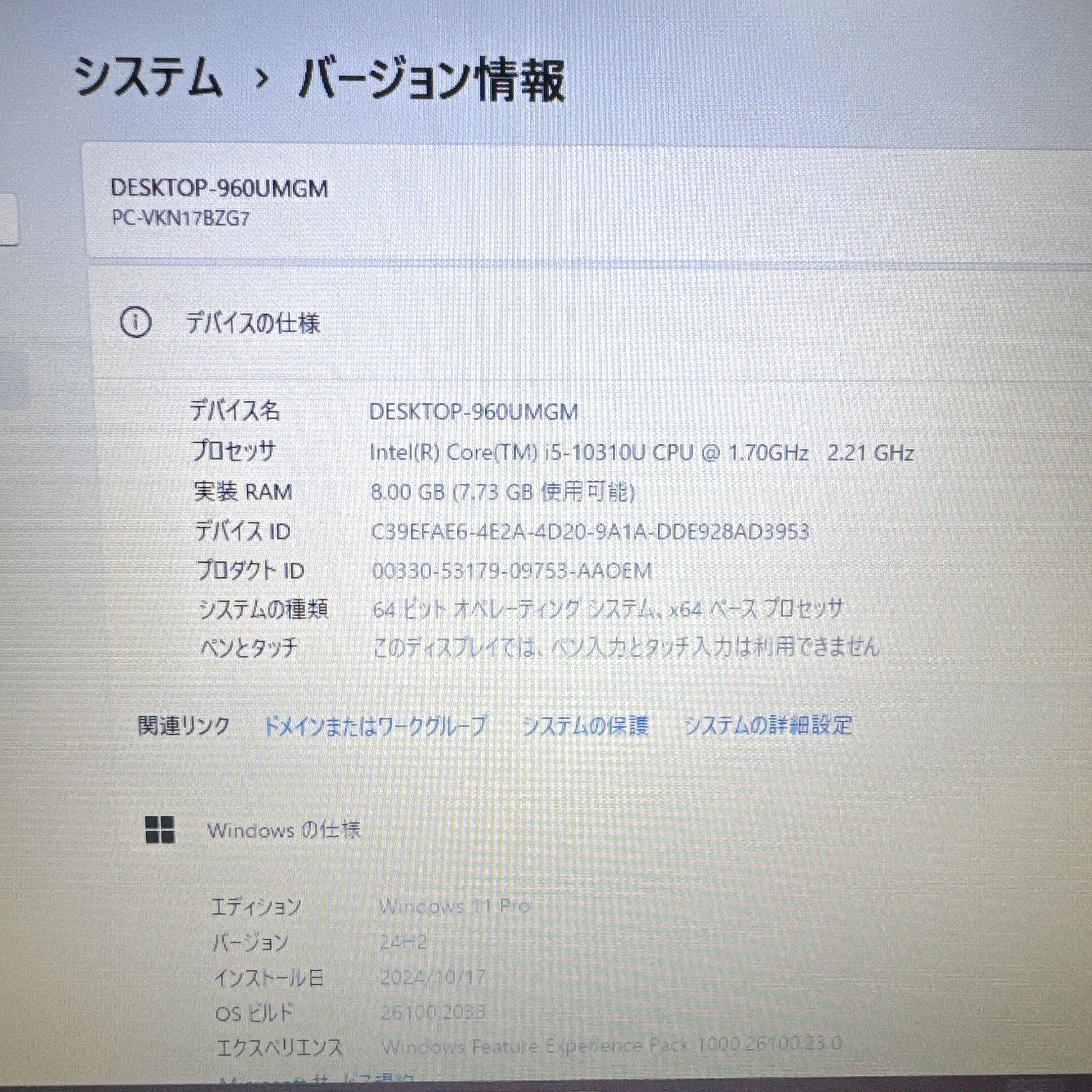 2020年式 NEC Versapro VB7 / Intel Core i5-10310U / メモリ8GB / SSD256GB / 15.6インチ FHD